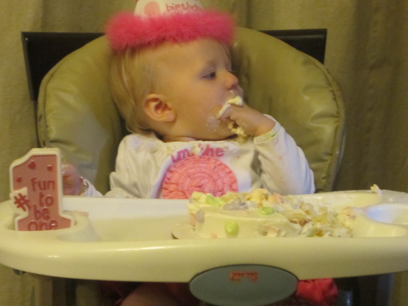 Annie's Eats..she's got one of my all time favorite blogs. I can usually trust her blog for..well, anything! I've never been disappointed! I made baby Reese a smash cake as well and she dug right in...for quite some time! Mommy even had to give her a bath afterwards! I'd rather have had her make a huge mess then cry! :) I'm glad she enjoyed it and had a good time! She's grown so fast and I miss holding her in my arms! Love you Reese!!